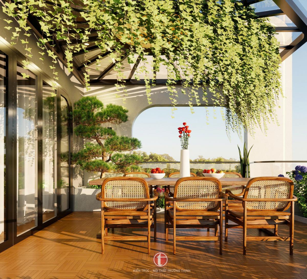 Hệ ban công kết hợp với cửa kính lớn không chỉ tạo điểm nhấn kiến trúc mà còn giúp tăng khả năng lấy ánh sáng tự nhiên cho không gian bên trong. Điều này giúp ngôi nhà luôn sáng sủa và thông thoáng.