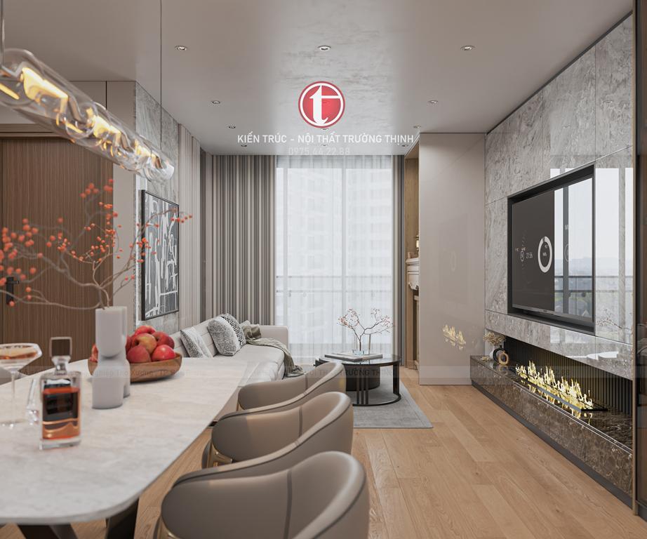 Chung cư Diamond Hill – Tháp đôi Bách Việt được Nội thất Trường Thịnh thiết kế theo phong cách hiện đại, tinh tế và hướng tới trải nghiệm sống lâu dài của gia đình. Không chỉ chú trọng đến vẻ đẹp thẩm mỹ, toàn bộ không gian còn được bố trí hợp lý để đảm bảo sự tiện nghi, thoải mái và phù hợp với sinh hoạt hàng ngày.